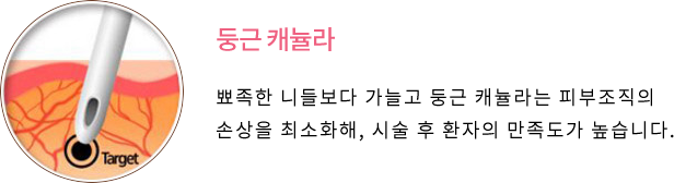 여려진 필러는 둥근 캐뉼라 주사로 안전하게 시술합니다